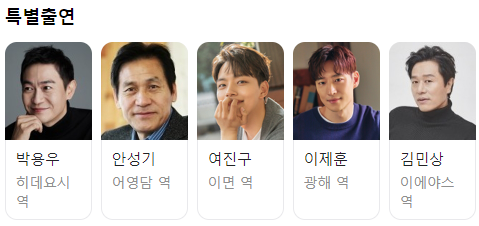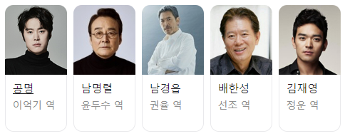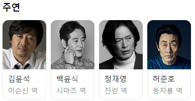 주연 출연진 : 이순신(김윤석), 시마즈(백윤식), 진린(정재영), 등자룡(허준호)