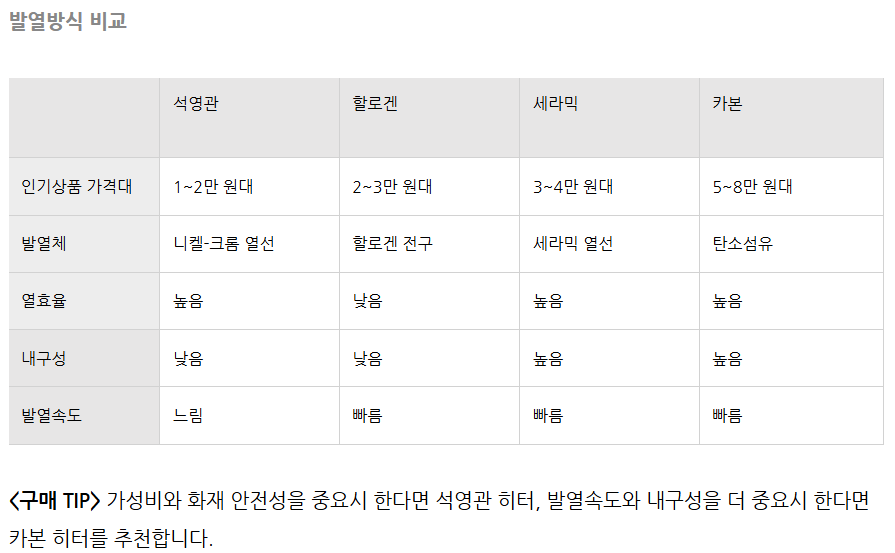 전기 난로도 종류가 여러개가 있어서 장단점을 비교해보았습니다.